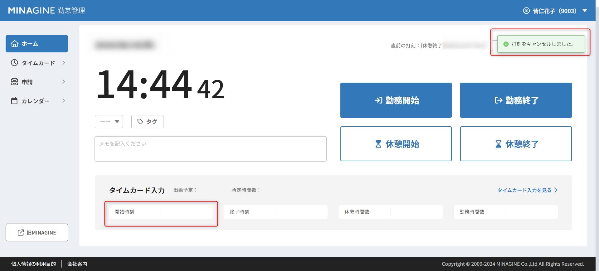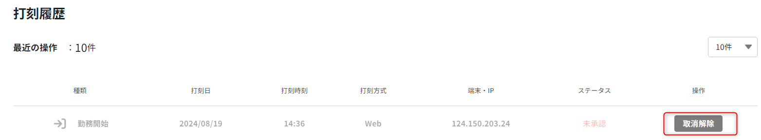 2. Web打刻の取消(キャンセル)方法