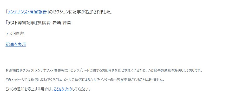 - ヘルプサイトでの通知