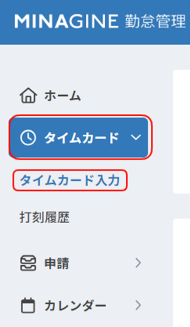 ログイン後のタイムカードメニューより、本日の勤怠を手動で登録できます。
